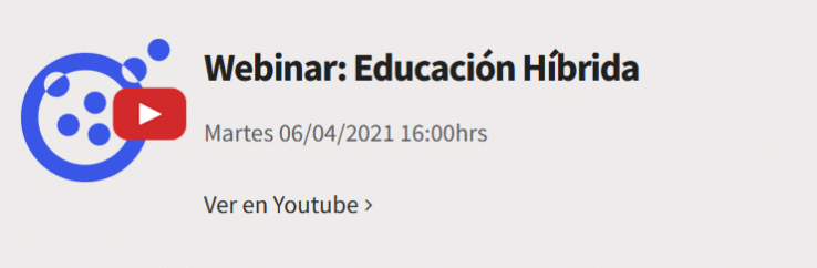 Webinar: Conferencia o seminario que se imparte de manera online, donde se profundiza acerca de didáctica, conceptos y metodología, siempre desde una mirada de la educación actual, aportando valor a través de la interacción que se produce entre el orador u los usuarios.